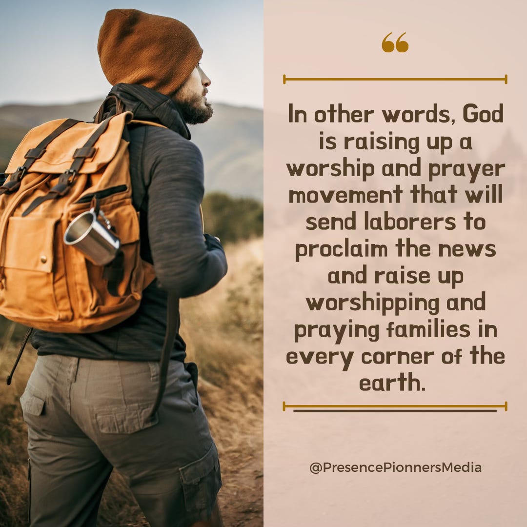 The proclamation of that gospel of the Kingdom will be carried on the wings of a praying, preaching and singing missions movement. Just as the prophet Malachi saw, that spread of the gospel throughout the whole world would coincide with incense being offered in every place. In other words, God is raising up a worship and prayer movement that will send laborers to proclaim the news and raise up worshipping and praying families in every corner of the earth. They pray, preach and sing.