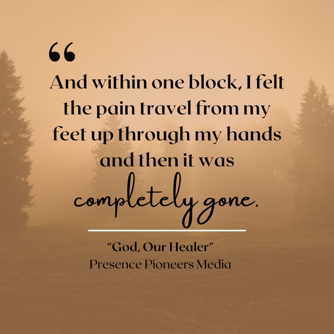 I began to “run.” It was more like an attempt and I probably looked completely foolish, but I was unaware at the time. I was focused on one thing only. I began to run and I felt pain, but it was not increasing and I was able to run, which was the first miracle. So I kept going and I prayed out loud, “Lord, YOU told me to run. YOU told me You would heal me while I run. Well, here I am!” And within one block, I felt the pain travel from my feet up through my hands and then it was completely gone.