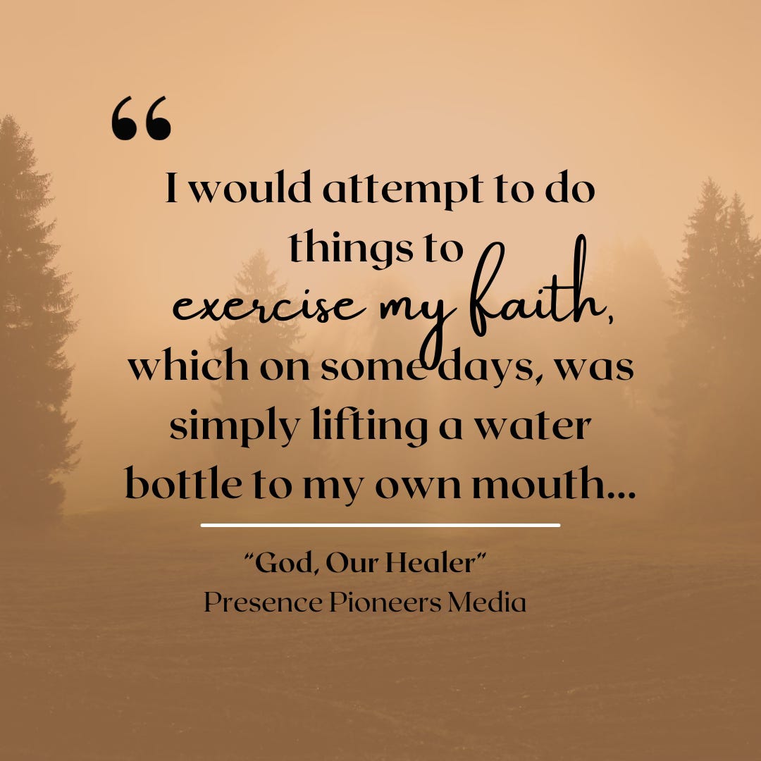 I remember clearly, August 1, 2015 I decided to believe God is Who He says He is, my Healer. I was going to believe Him no matter what my circumstances looked like. I decided on that day that I was going to take each day at a time and believe for His healing. I would wake up in the morning with pain and I would say out loud “Today is the day I am getting healed.” I would attempt to do things to exercise my faith, which on some days, was simply lifting a water bottle to my own mouth (as there were times I was not able to do even that on my own). At the end of each day, if I wasn’t healed yet, I would say “Thank You, Jesus, MY Healer, You can heal me in my sleep if You so please.” I would fall asleep and rinse and repeat!