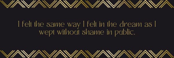 Shortly after the dream, I spoke at a church that was committing a serious injustice against a long-time leader. As I shared, rather than rebuke anyone, I just wept and wept in public. It was completely out of character for me. I felt the same way I felt in the dream as I wept without shame in public.