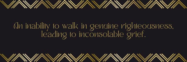 An inability to walk in genuine righteousness, leading to inconsolable grief.