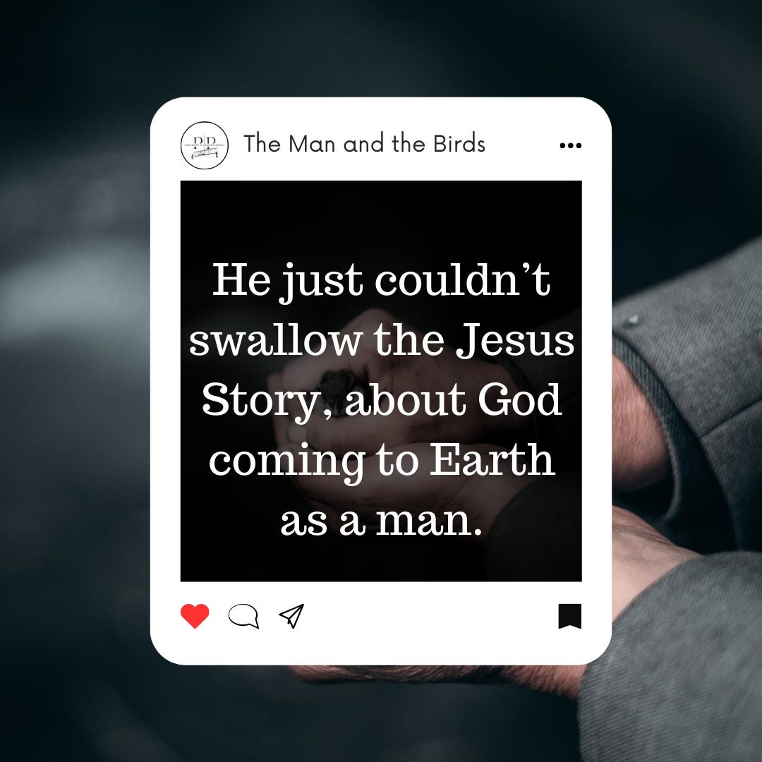 The man to whom I’m going to introduce you was not a scrooge, he was a kind decent, mostly good man. Generous to his family, upright in his dealings with other men. But he just didn’t believe all that incarnation stuff which the churches proclaim at Christmas Time. It just didn’t make sense and he was too honest to pretend otherwise. He just couldn’t swallow the Jesus Story, about God coming to Earth as a man.