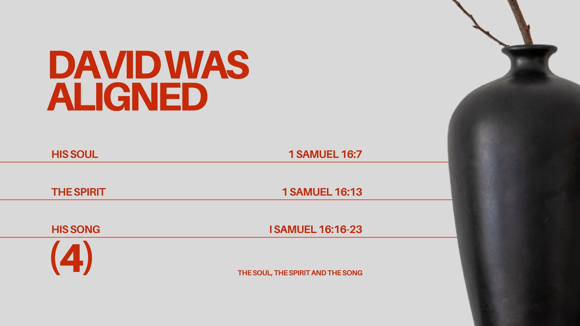 In this story, we see David’s soul (I Samuel 16:7) and song (I Samuel 16:23) aligned with the Spirit of God (I Samuel 16:13), and God’s transformative power was released.